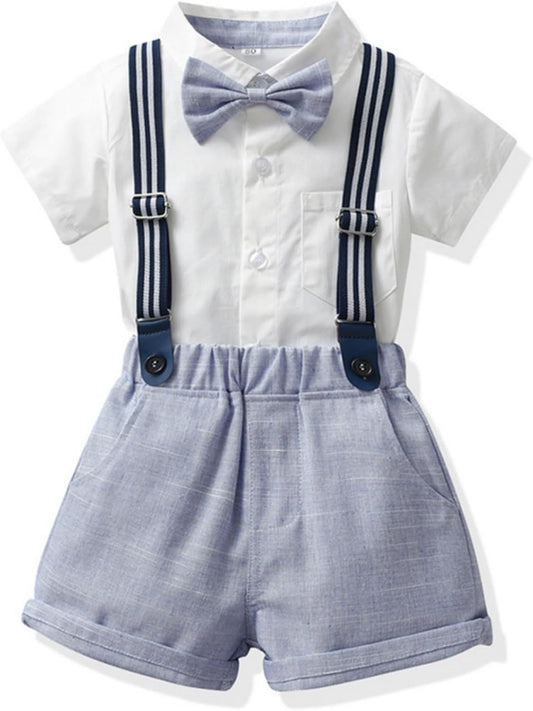 Toddler Boy Summer Gentleman Outfits Short Sleeve Shirt with Bowtie Suspender Shorts Suit 1-8 Years