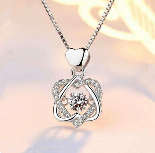 Heart Twisted Crystal Pendant 925 Sterling Silver Necklace Womens Jewellery Gift